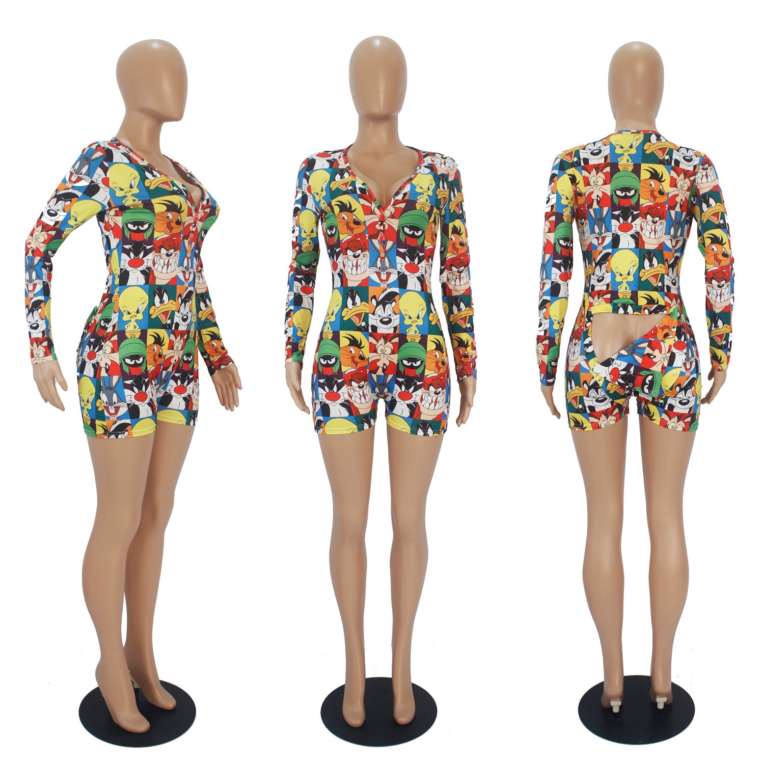 Custom printed long sleeve onesie with shorts.